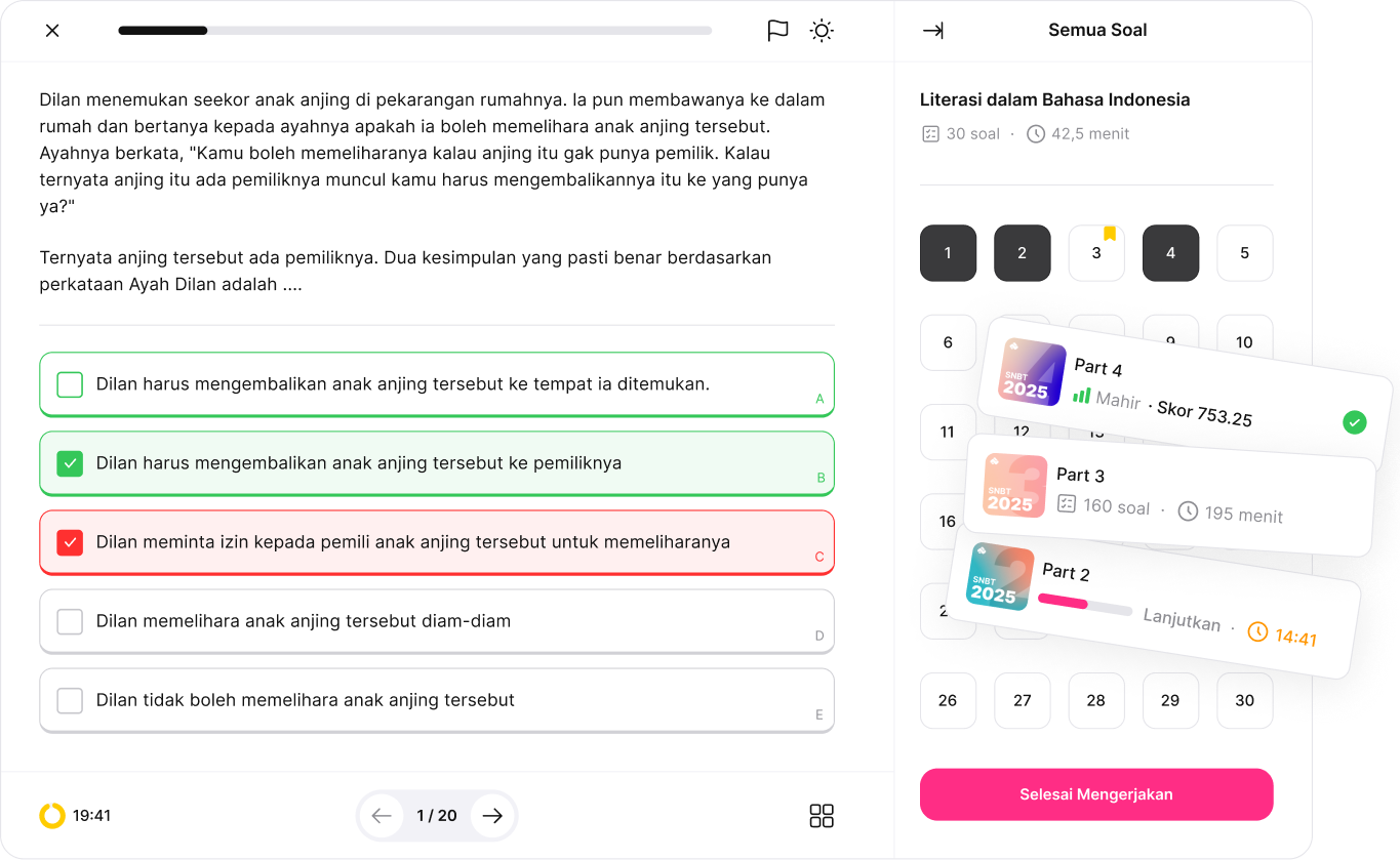 Tryout dirancang menyerupai format, durasi, dan tingkat kesulitan ujian sesungguhnya. Latih mental dan pengaturan waktu agar tidak gugup saat menghadapi ujian asli.